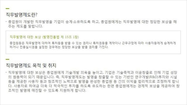 직무발명보상제도는 경제적 약자인 종업원 등을 보호하면서 동시에 발명활동을 직, 간접적으로 지원한 사용자 등의